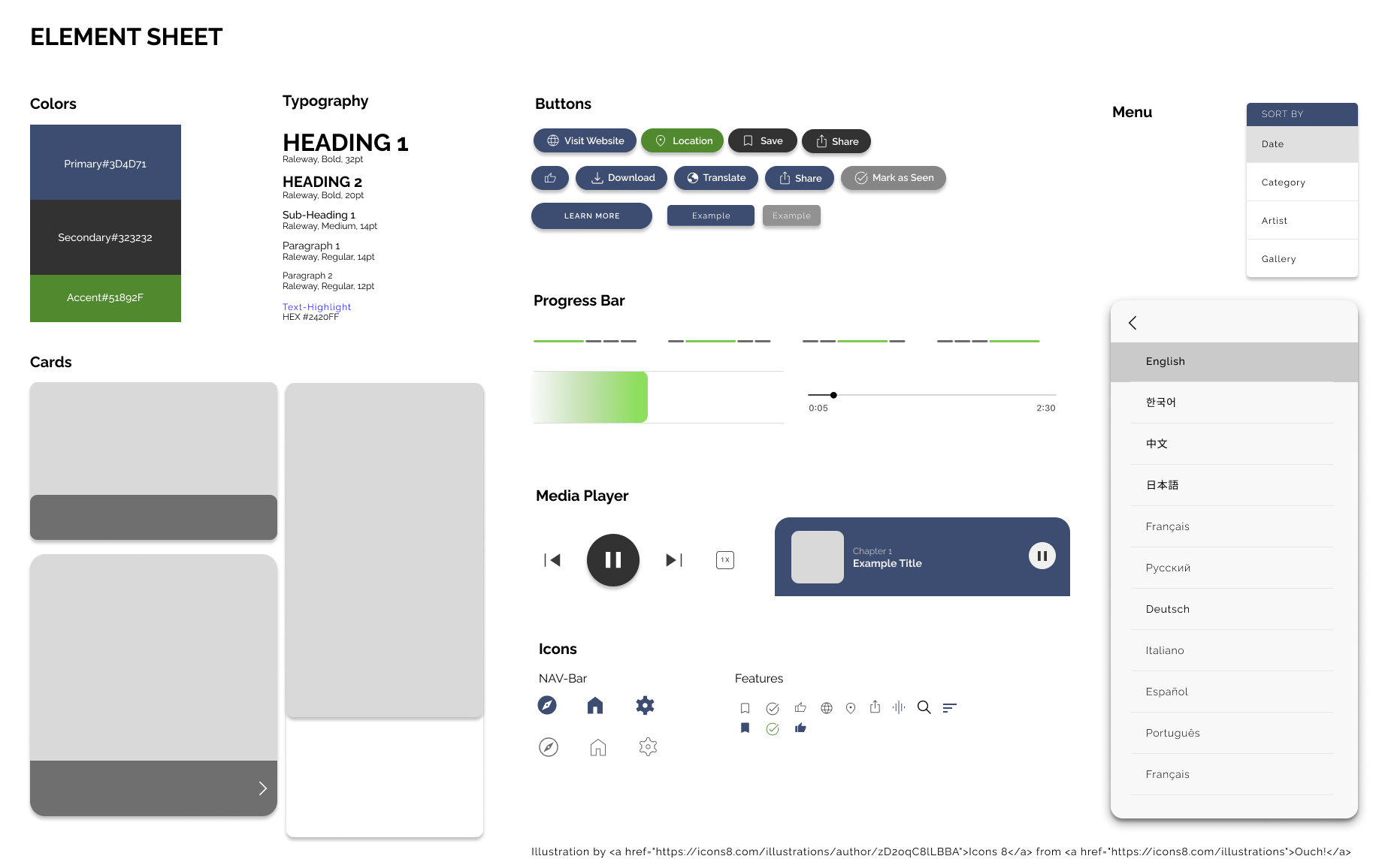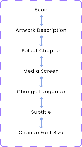Out of the 5 interview participants: 3 were non-native English speakers, 3 used accessibility features regularly, and 2 visited galleries on a regular basis. The interviews were held virtually through Zoom or Discord, which lasted around 30 minutes each session. The interviewees were asked questions of past experiences with similar applications, frequency of using the any art gallery apps, frequency of visiting galleries physically, and any pain points or enjoyable moments of physical & virtual art gallery visits.