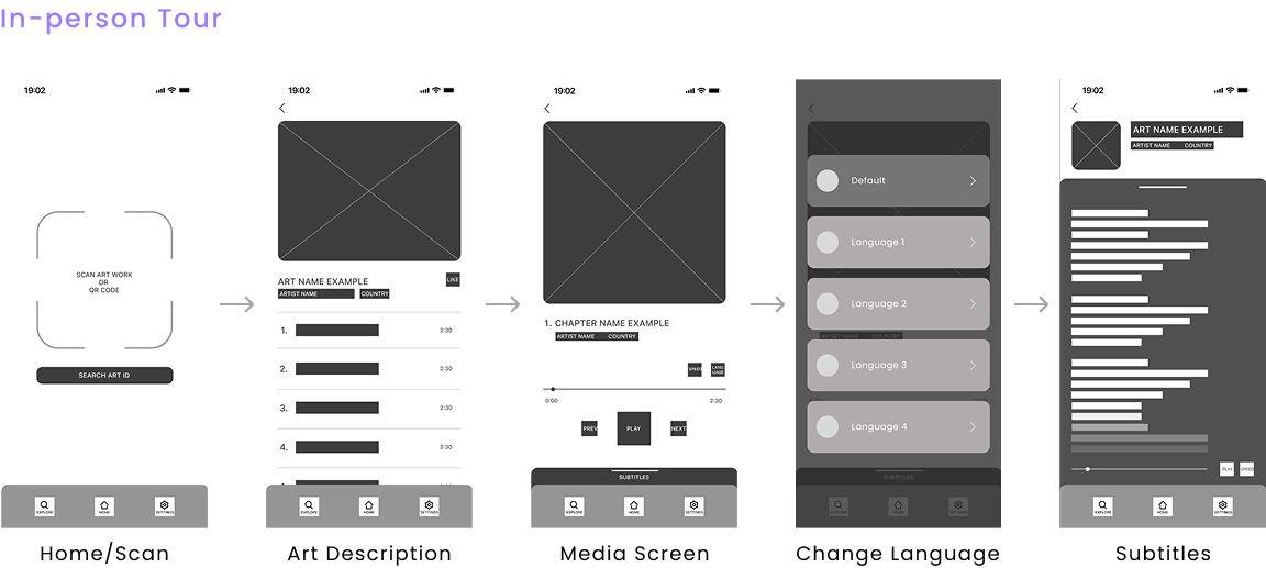 Three things stood out from the research: audio tour apps consistently lacked accessibility features like subtitles and translation; virtual tours were being used as a substitute for in-person visits, not just a supplement; and there was no universal app that worked across galleries worldwide — every venue had its own.
